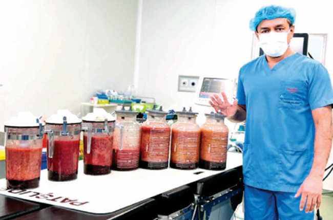 මේ ආකාර සැත්කමකින් සාමාන්‍යයෙන් ඉවත් කරනු ලබන්නේ තෙල් ලීටර් 4-5 අතර ප්‍රමාණයක් බවත් මෙතරම් විශාල තෙල් ප්‍රමාණයක් ඉවත් කිරීමේ සැත්කමක් මෙරට පමණක් නොව ලොව වෙනත් රටක හෝ වාර්තා වී නොමැති බවත් විශේෂඥ වෛද්‍යවරයා සඳහන් කළා.