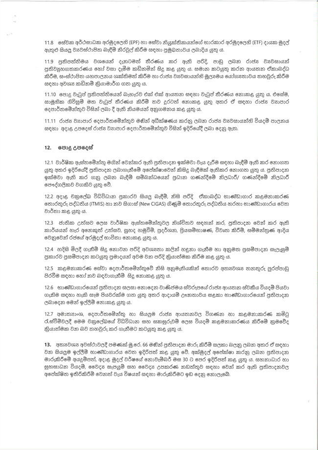 රජයේ වියදම් පාලනය, අත්‍යවශ්‍ය වියදම්, වැටුම්, දීමනා සහ ගමන් වියදම් ඇතුළු අංශ රාශියක කටයුතු සම්බන්ධයෙන් මෙමගින් දැනුම්දෙනවා.