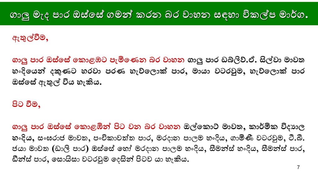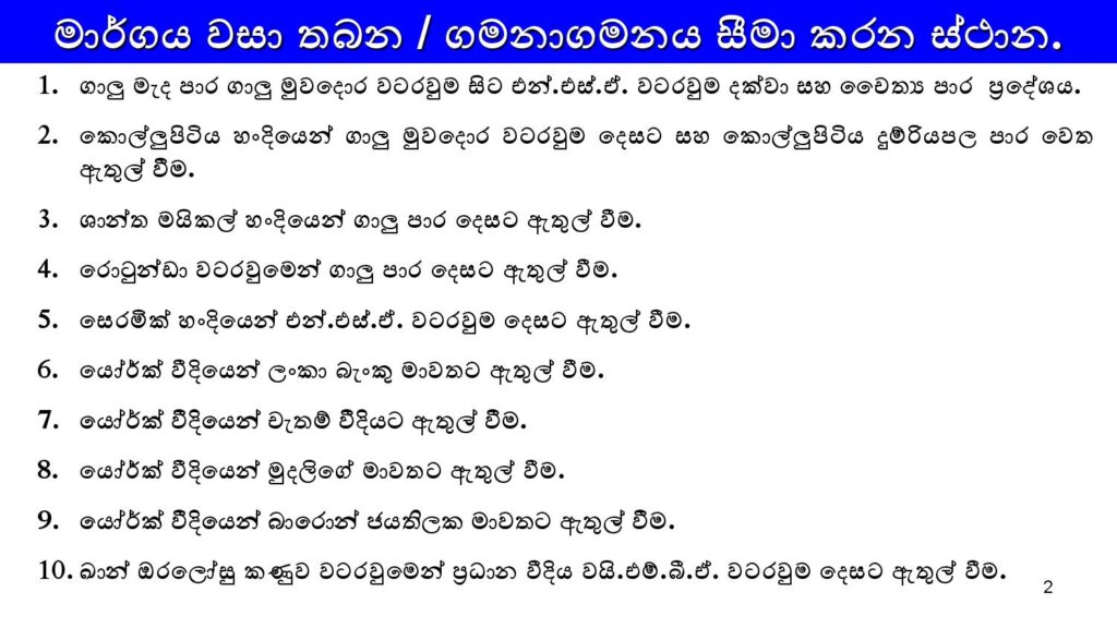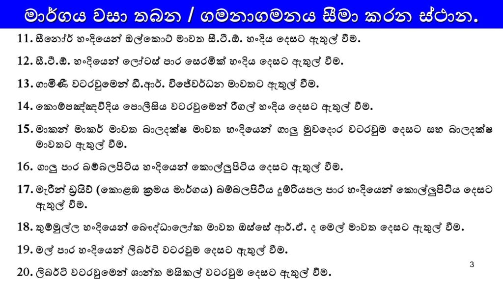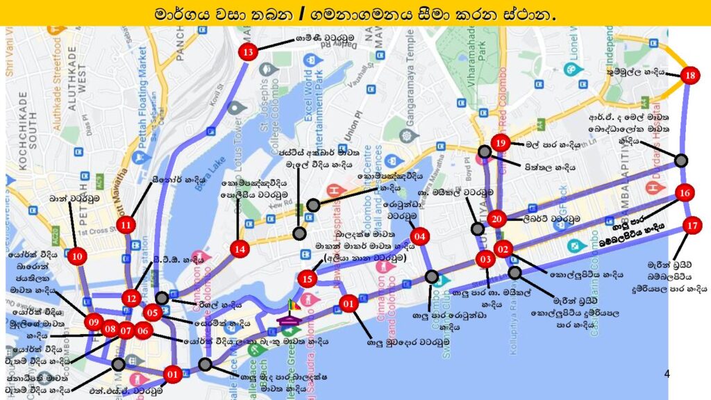 එහිදී මාර්ගය වසා තබන සහ ගමනාගමනය සීමා කරන ස්ථානයන් පොලිසිය දැනුම්දෙනවා.