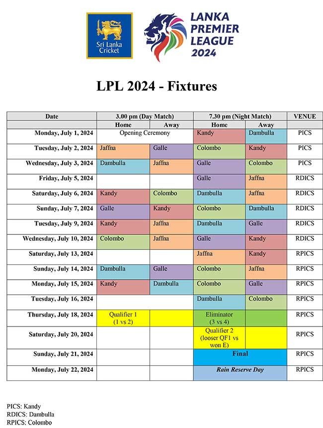 2024 ලංකා ප්රිමියර් ලීග් තරග කාලසටහන නිකුත් කර තිබෙනවා.