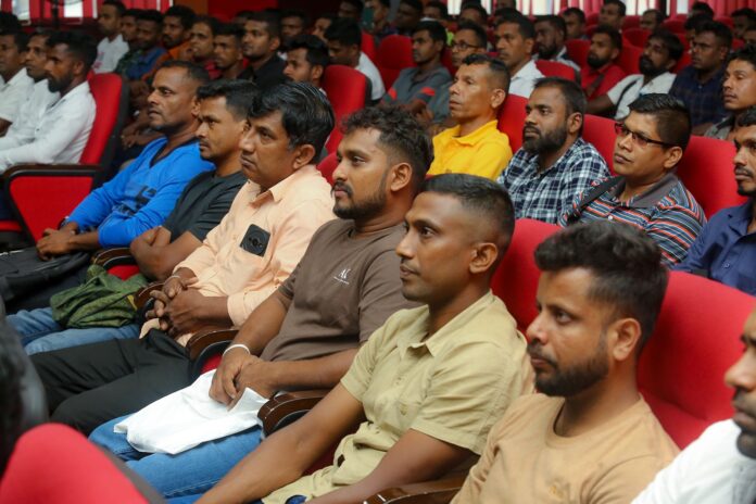 “පළමු කණ්ඩායම වාසි සහගතයි කියනවා වගේම තමයි පළමු කණ්ඩායම අවදානම්සහගතයි. මොකද රටේම අනාගතයට ඔබලාගේ ගමන තීරණාත්මකයි. පළමු කණ්ඩායම වීම ගැන ඔබ වාසනාවන්ත වෙන්නේ මේ දක්වා ඊශ්රායලයට ගිය අයගෙන් වැඩිම පඩි හම්බවෙන්නෙ ඔයාලට. හැබැයි නිකන් ඉඳලා නෙවෙයි. ලංකාවේ දවසකට වැඩ කරලා හොයන මුදලට වඩා මුදල එහෙදි වැඩියි. එහෙදි දරු සුරතල් බලන්න නෑ. වෙනත් වැඩ නෑ. ඒ ගිහිල්ල වැඩ කරන කාලයේ උපරිම මුදලක් හම්බ කළොත් ඔයාලා තමයි වැඩිම මුදලක් හම්බ කරන කණ්ඩායම. අවම වැටුප වගේ දෙගුණයක් විතර ඔබට හම්බ කරන්න පුළුවන් වීම වාසනාවේ පැත්ත. අවදානම් පැත්ත තමයි හරියට වැඩ නොකළොත් අනාගතයේදී යන්න ඉන්න 20,000ක ශ්රී ලාංකිකයින්ට අසාදාරණයක්. ඔබ ඉදිකිරීම් වැඩපළේ, මෑන් පවර් ඒජන්සියේ නවතින්න පුළුවන්. ලංකාවේ වැඩ කරද්දි වැඩ කරන්නේ සුඛෝපභෝගී තැන්වල ඉඳලා නෙමෙයි. නමුත්, පිටරටට ගියාම වොශින් මැශින්, කාමරේ ඒසී හොයන්න එපා. ඊශ්රායලයේ කෘෂි අංශයේ රැකියාවලට ගිය සමහර අයට දවසට දොඩම් කූඩ 02ක් කඩන්න කිව්වම කූඩයක් කඩාගන්න බෑ. අපේම තරුණයො ඉලක්කය සපුරලා, වැඩි ගණනකුත් හොයනවා.ඊශ්රායලයේ හාම්පුතුන් ඉල්ලන්නේ හොඳම අයව. පළමු අයගේ කණ්ඩායම ගැන වැරදි ප්රචාර නිසා අපේ කෘෂි ශ්රමිකයන් ගන්න එපා කියලා ප්රචාරය වුණා. රට වට්ටන්න ඕන නිසා ඒ අය රටට සල්ලි එවන්නත් එපා කිව්වා. ඒ අය ෆේස්බුක් එකෙන් මාලිමාවට ජය වේවා කියනවා.