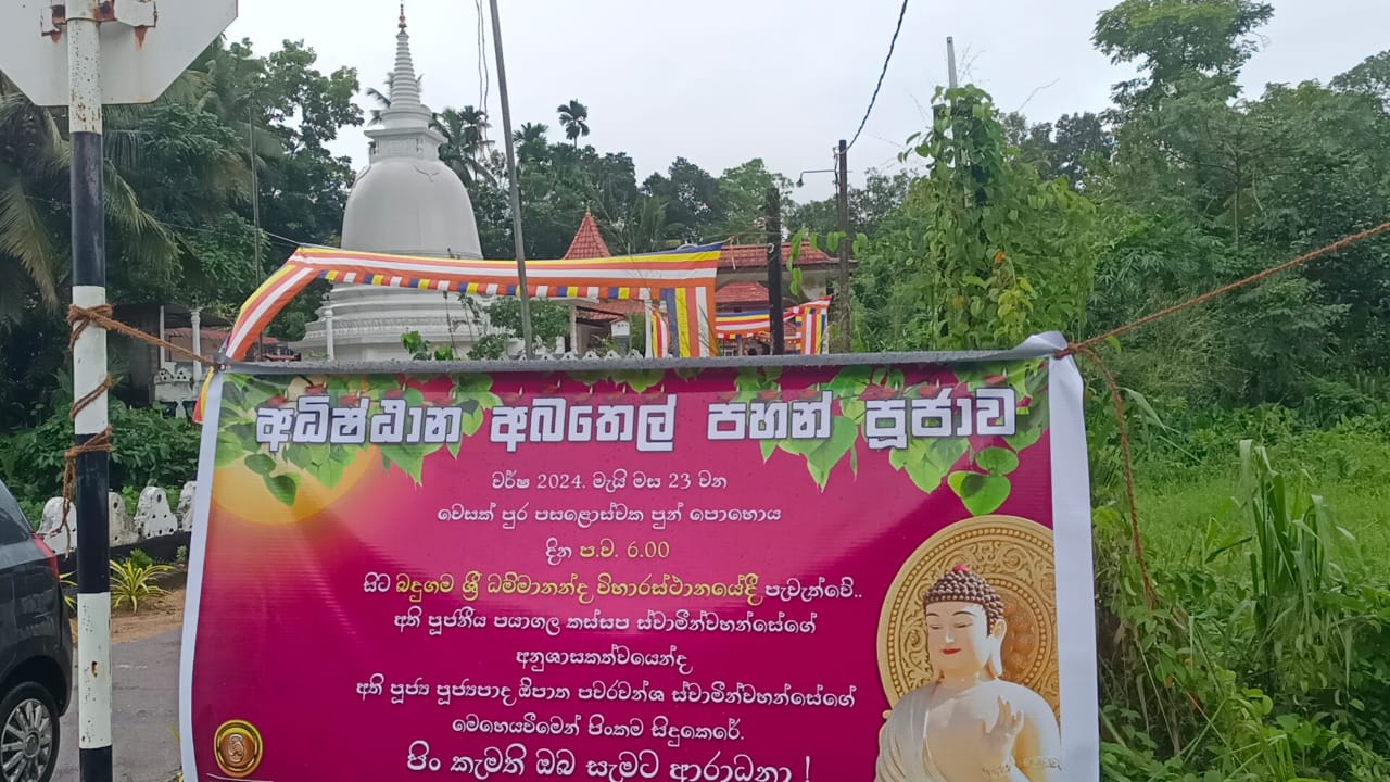 වර්ෂ 2024. මැයි මස 23 වන වෙසක් මස පුර පසළොස්වක පුන් පොහොය දින ප.ව. 6.00 සිට බදුගම ශ්රී ධම්මානන්ද විහාරස්ථානයේ විහාරාධිපති පූජ්ය බදුගම වංගීස නායක ස්වාමීන්වහන්සේගේ මගපෙන්වීම මත පැවැත්වේ.