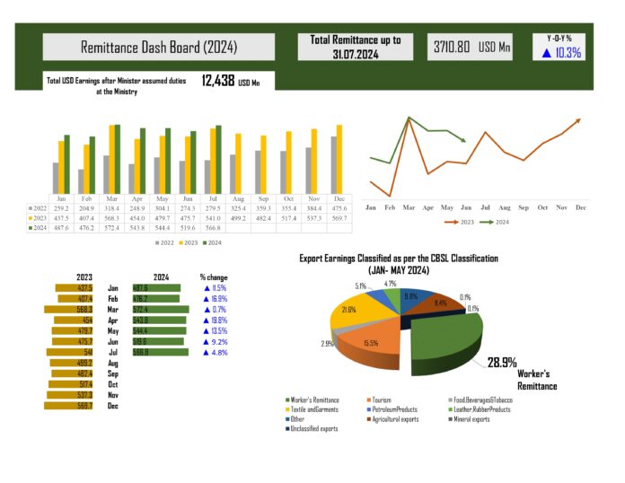 තෙල් පෝලිම්, ගෑස් පෝලිම්, කිරි පිටි පෝලිම් නැති කර රටට අවශ්ය අත්යවශ්ය භාණ්ඩ ආනයනය කිරීම සදහා මාසයකට ඩොලර් මිලියන 500ක් නීත්යානුකූල ක්රමය ඔස්සේ රටට ලබාදෙන ලෙසට ඉල්ලීම් කළ අතර එයට විදේශ ගත ශ්රමිකයින්ගෙන් යහපත් ප්රතිච්ර හිමිව තිබුණි. පසුගිය වසරේ මාර්තු මාසයේ සිට විදේශ ගත ශ්රමිකයින් එවනු ලබන ප්රේශණ ප්රමාණය ඩොලර් මිලියන 500 සීමාව ඉක්මවූ අතර පසුගිය මාස හයක කාලය පුරා අඛණ්ඩව ඩොලර් මිලියන 500 සීමාව ඉක්මවා යාමට හැකියාව ලැබී තිබුණි.