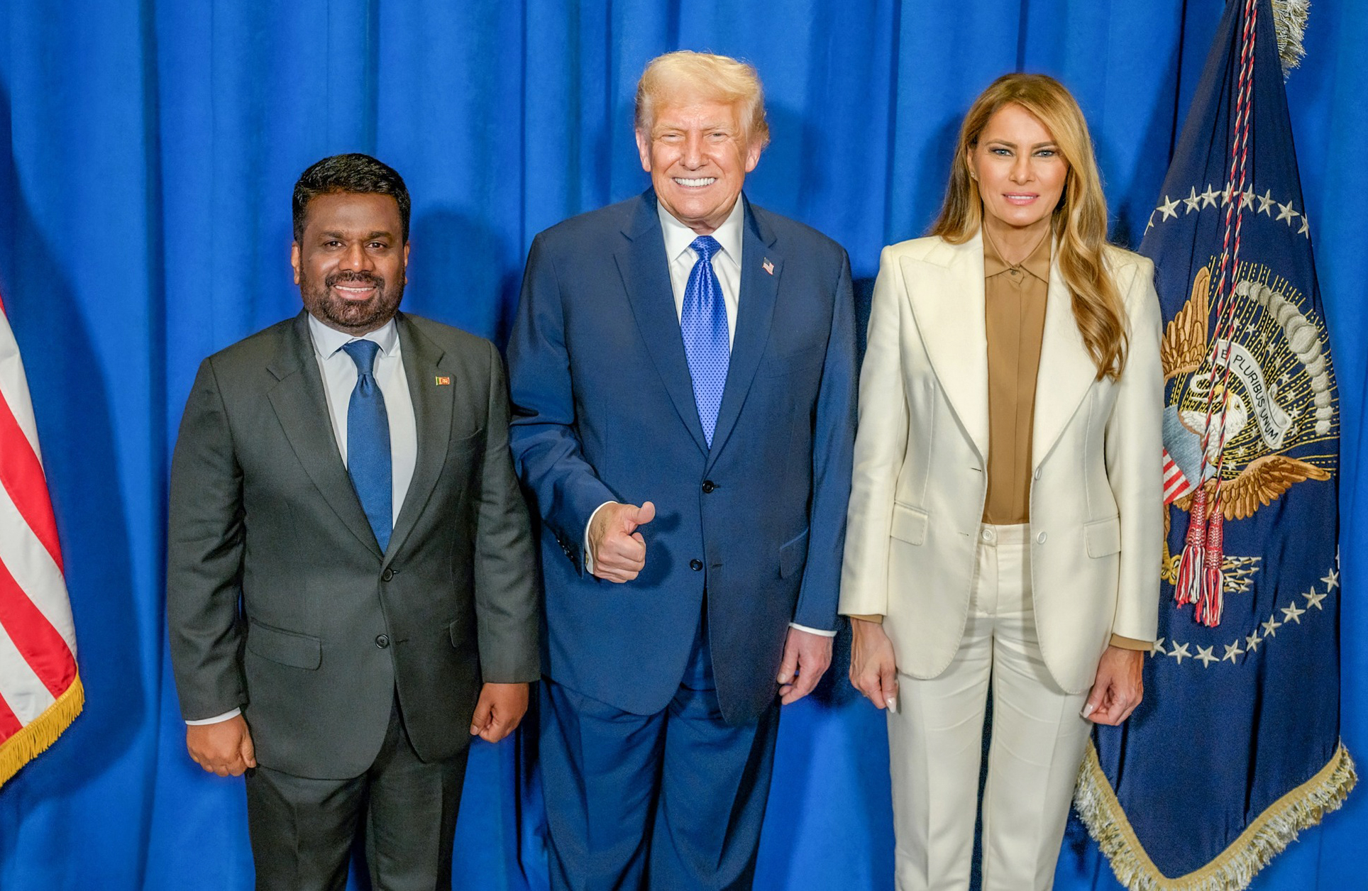 එහිදී, ඇමරිකා ජනාධිපති ඩොනල්ඩ් ට්රම්ප් මහතා විසින් ජනාධිපති අනුර කුමාර දිසානායක මහතා ඉතා උණුසුම් ලෙස පිළිගත් අතර සුහද කතාබහකින් අනතුරුව රාජ්ය නායකයෝ දෙපළ ඡායාරූපයකටද එක් වූහ.
